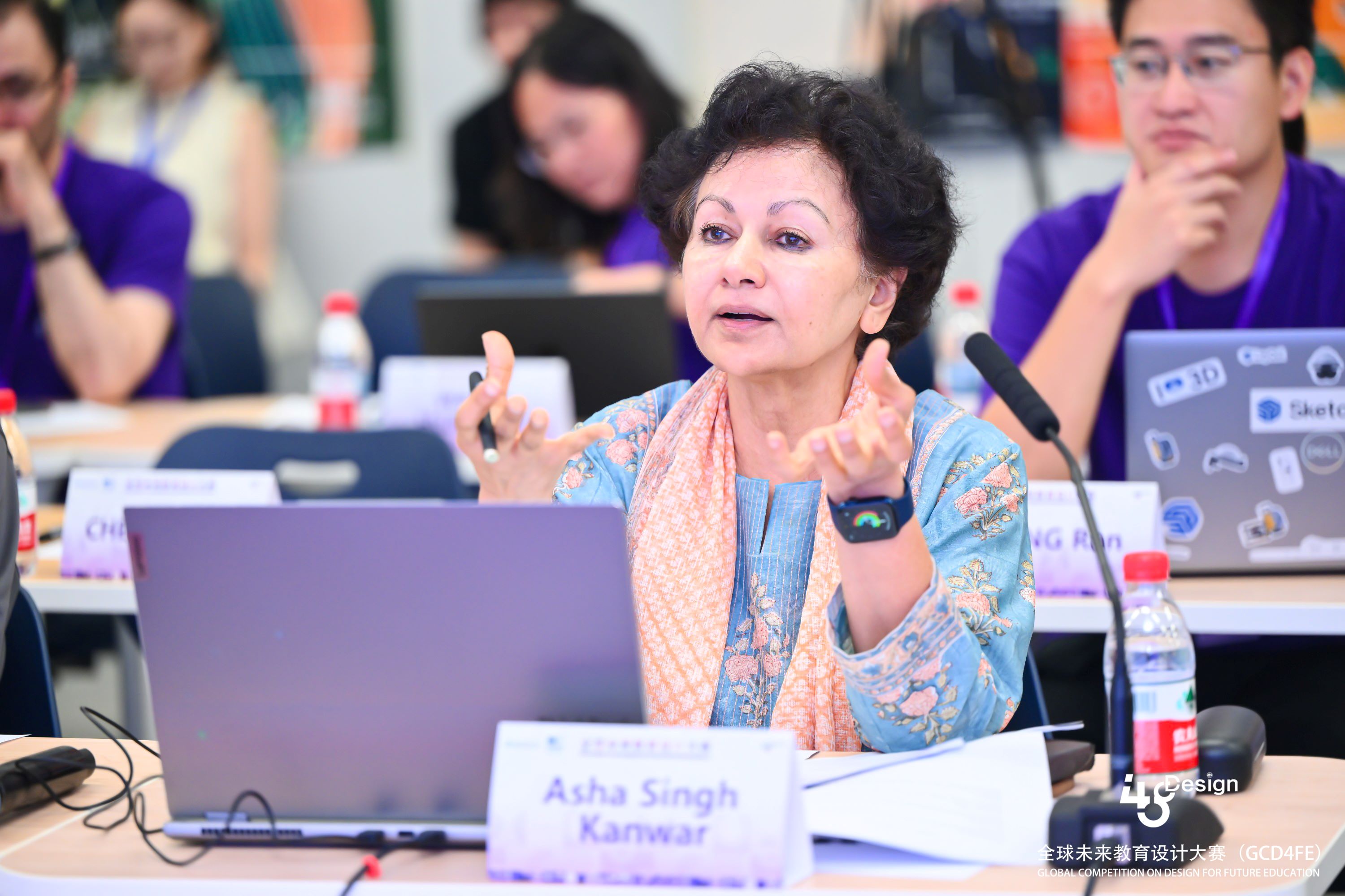 裁判委员会由来自工业技术、数理学、人工智能教育、心理学等领域的国际顶尖专家组成。大赛裁判委员会联席主席、北京设计学会创始人宋慰祖,联合国教科文组织教育信息技术研究所理事会主席、阿莎·辛格·坎瓦尔(Asha Singh Kanwar),联合国教科文组织教育信息技术研究所国家教育高级项目官员、教师专业发展与网络部门负责人娜塔莉亚·阿米丽娜(Natalia Amelina),香港理工大学高等教育研究及发展院院长、学习科学与技术讲座教授胡祥恩,北京师范大学教育学部教授、智慧学习研究院副院长李艳燕对各个团队的项目作品进行逐一点评。裁判委员会基于“问题意识、创新精神、科技融合、应用前景、呈现表达”五大评估维度,对参赛选手的表现给予充分肯定,在以下方面提供专业建议,包括关注技术的潜在危害、培养适应个性化学习的创新思维、设计辅助数字时代生活的产品、注重社群交互与自然和谐共生等。