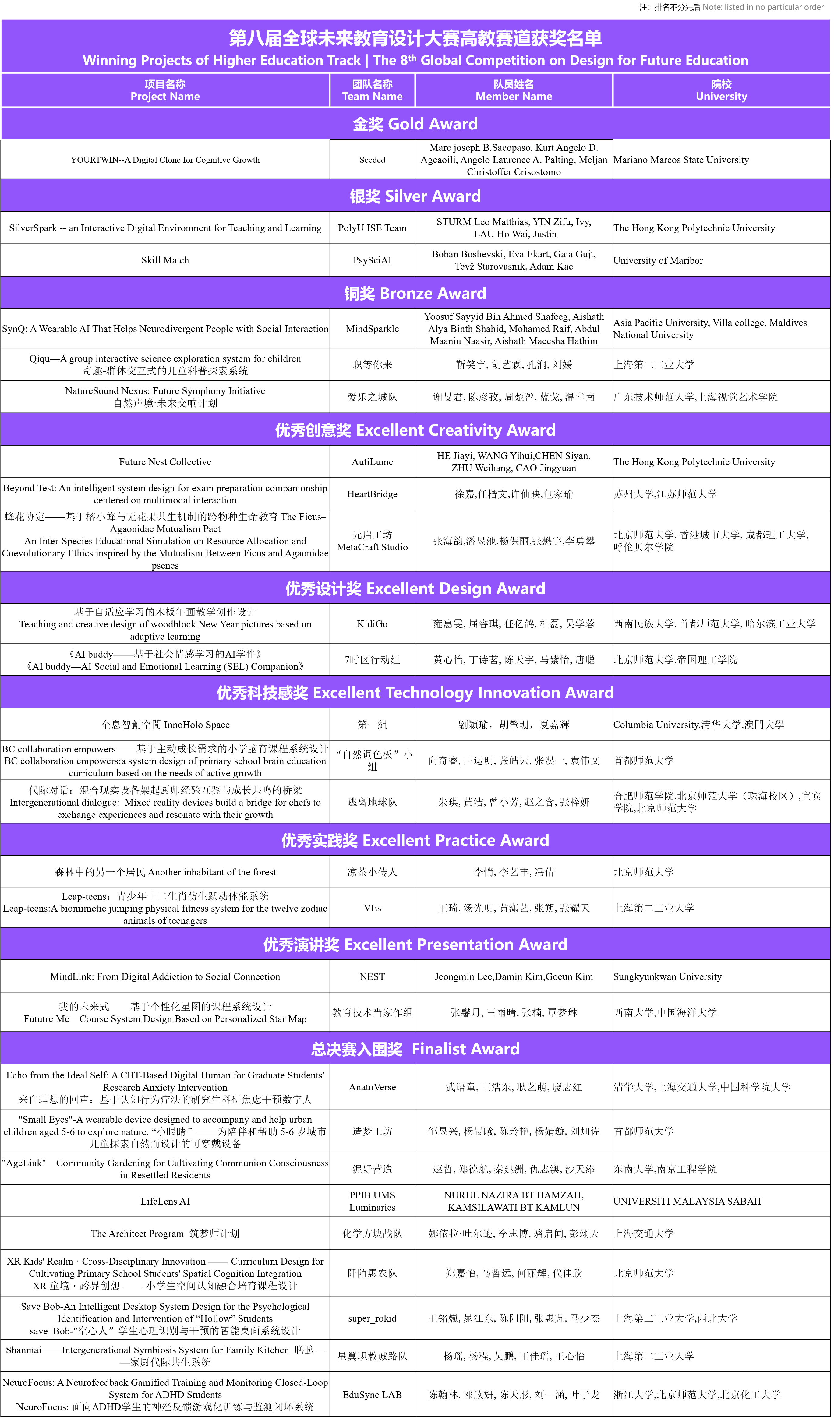 第八届全球未来教育设计大赛高教赛道总决赛已落下帷幕。教育创新的步伐永不停歇,期待全球各界人士继续携手共进,以科技为翼,以教育为舟,共同驶向更加美好的未来教育彼岸!”