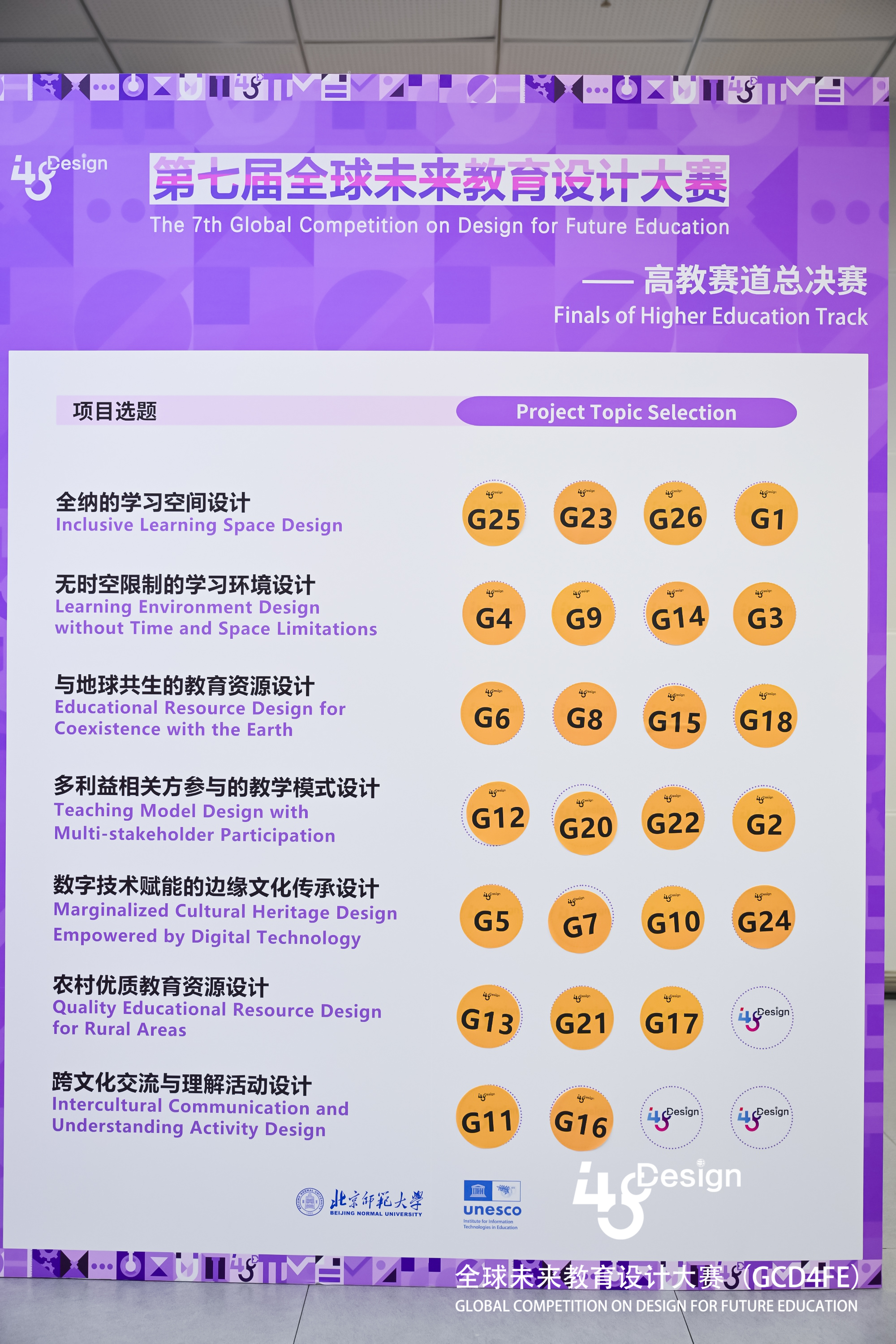 本届总决赛响应联合国教科文组织《一起重新构想我们的未来:为教育打造新的社会契约》的理念,特别策划七大赛题: