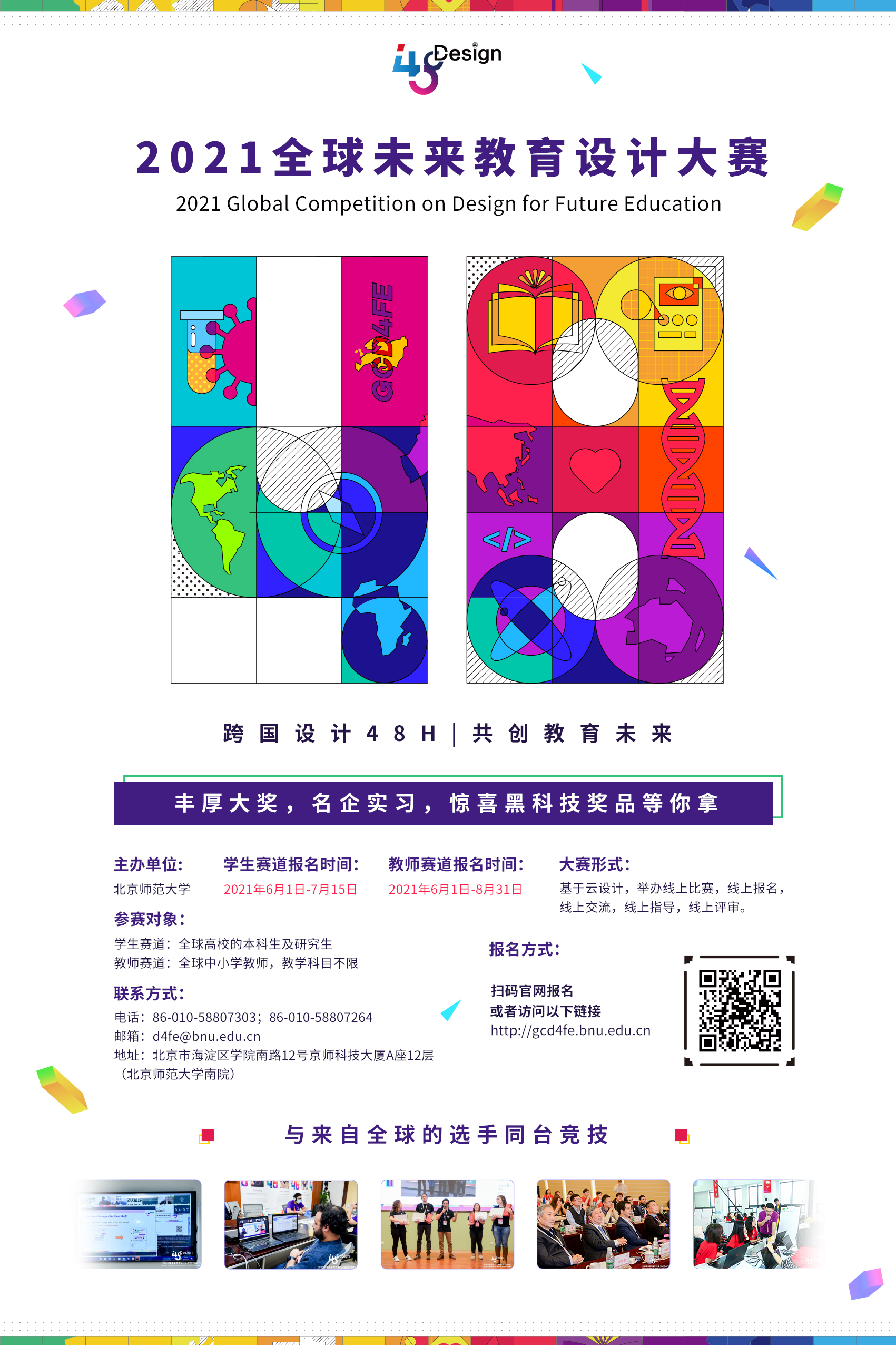 由北京师范大学主办的“2021全球未来教育设计大赛(Global Competition on Design for Future Education, GCD4FE)”计划于2021年6月-11月开展,报名通道于6月1日正式开启。大赛以“全纳教育”为主题,分为全球高校学生和中小学教师两个赛道,将通过“云设计”的形式举办线上比赛和案例征集活动,希望汇聚来自世界各地不同学校、不同专业领域的师生对于未来教育的创意想法,以更好地应对未来的不确定性和挑战,探索全民优质教育的创新解决方案。