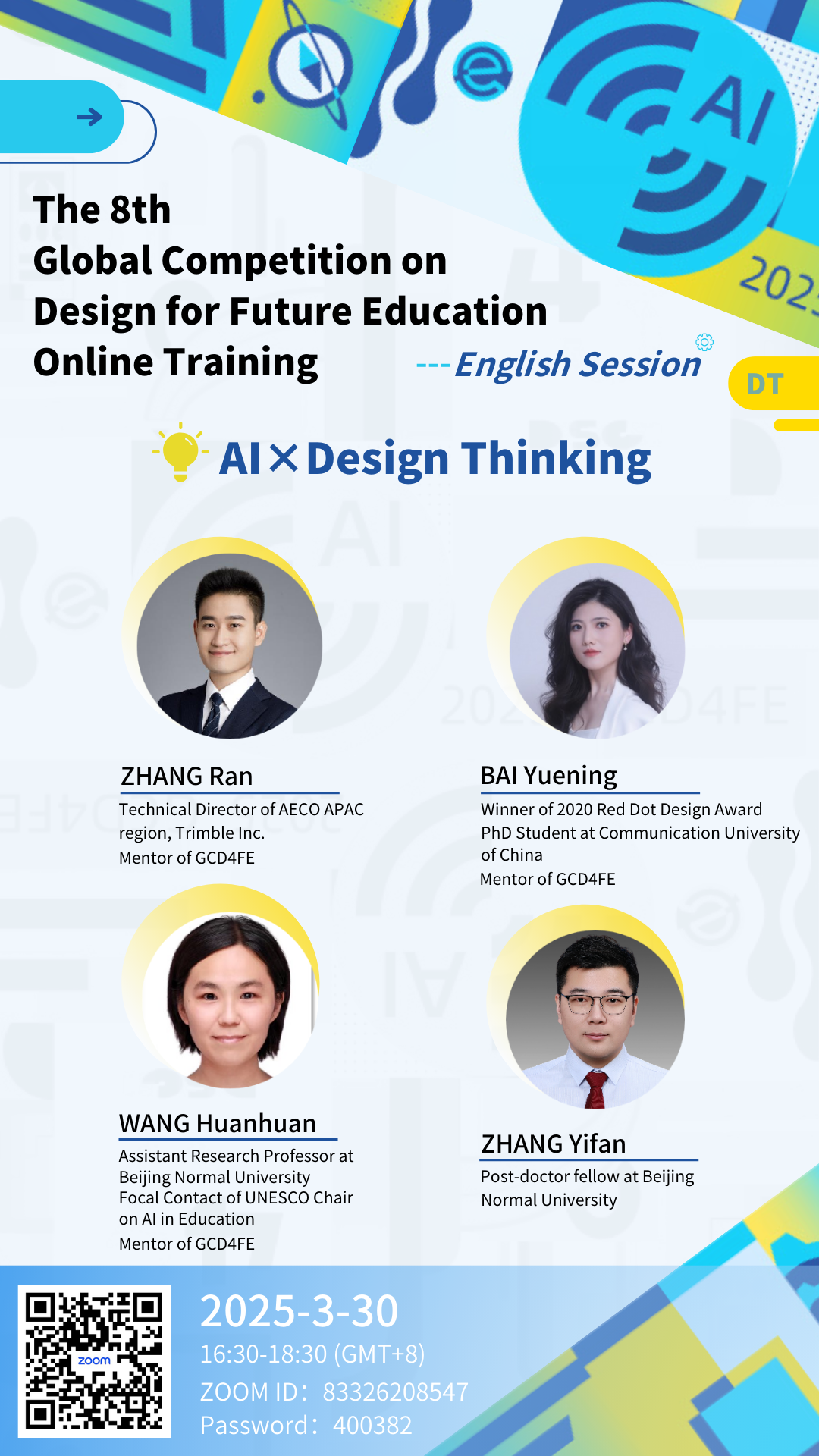 2025年3月30日,大赛组委会将针对高教赛道组织中英文培训会,邀请赛事导师团队解读赛事评审标准,帮助参赛者准确把握赛题方向,明确设计重点;提供设计思维及AIGC工具培训,详解赛事作品设计方法与技巧,分享实用工具,助力参赛者融合前沿技术,进一步提升作品创新性。