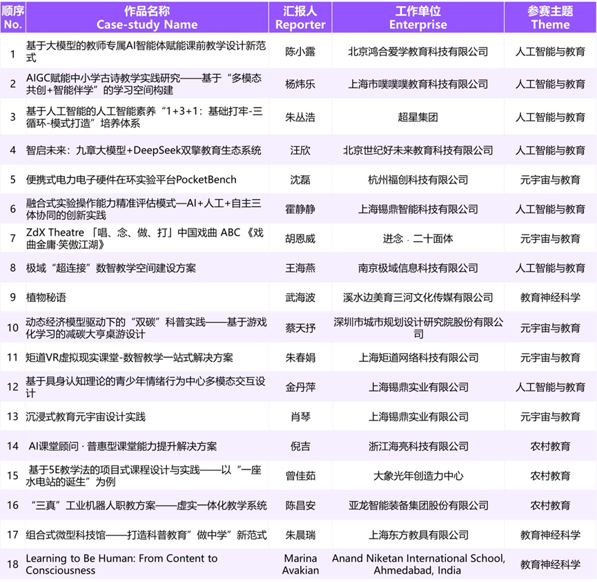 经专家组遴选,最终18个优秀作品脱颖而出,成功晋级企业赛道总决赛。入围团队将围绕前沿科技成果,运用新兴技术重构学习内容、升级教学环境与方式,为教育行业数字化与智能化转型提供实践方案,共同探索未来教育智慧高效的发展路径。