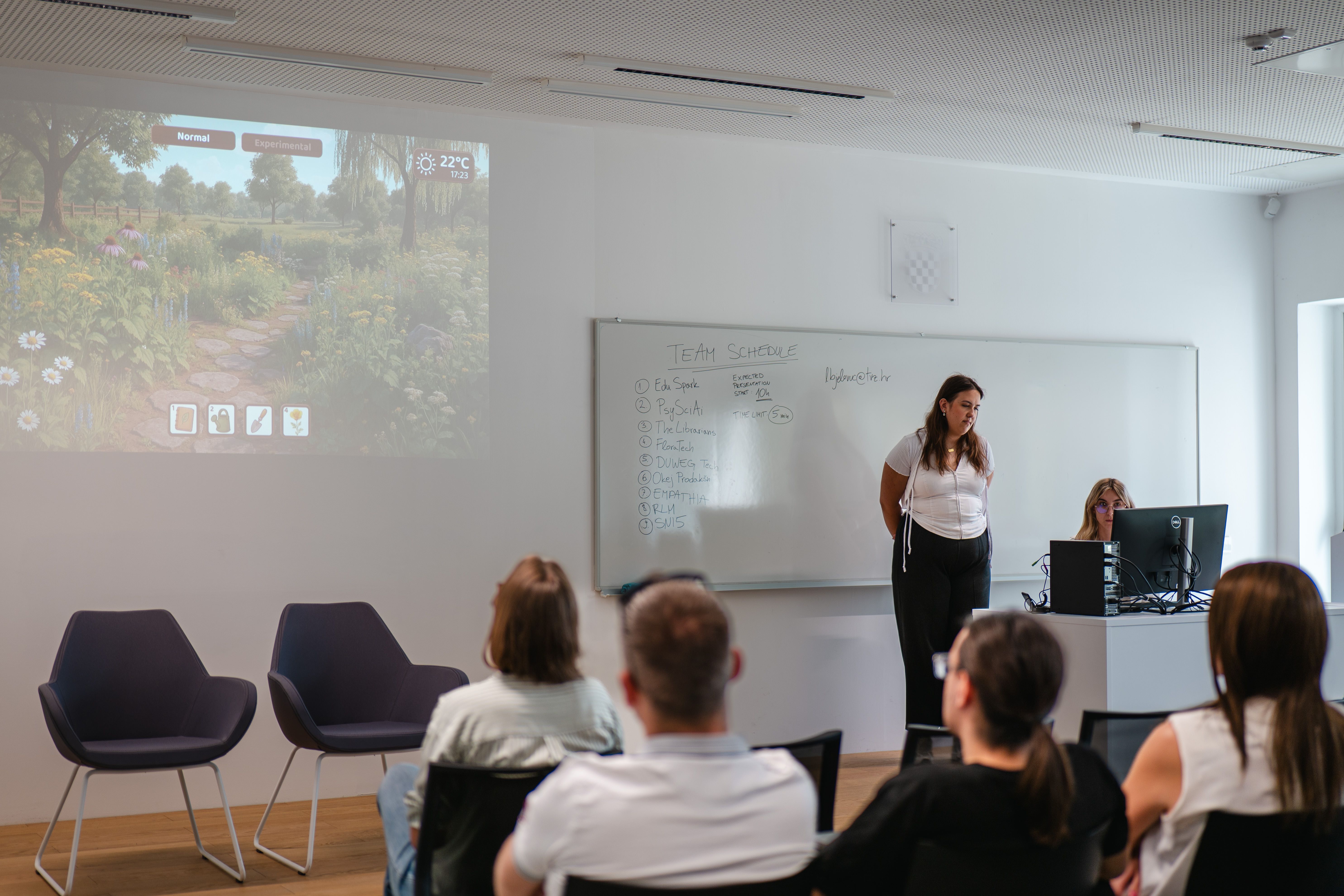 18号的路演汇报将赛事推向高潮,各团队作品有基于人工智能的个性化学习解决方案,有注重虚实结合的沉浸式教育体验,有打破时空界限的知识获取平台······选手们通过生动的作品演示和案例解析,生动诠释了科技向善的教育革新理念。联合国教科文组织人工智能与教育教席联络人、北京师范大学助理研究员王欢欢,萨格勒布应用科学大学计算机科学助理教授Mia Čarapina,萨格勒布大学设计学院副教授Vedran Kasap,马里博尔大学电气工程和计算机科学学院助理教授Maja Pusnik作为评委出席了本次活动,并对参赛作品给予了高度评价。评委一致认为这些参赛作品生动诠释了技术与人文的有机融合,在提升教学效率的同时,更注重学习体验的温度与包容性,为构建智能化、个性化且充满人文关怀的未来教育新生态提供了富有价值的实践思路。